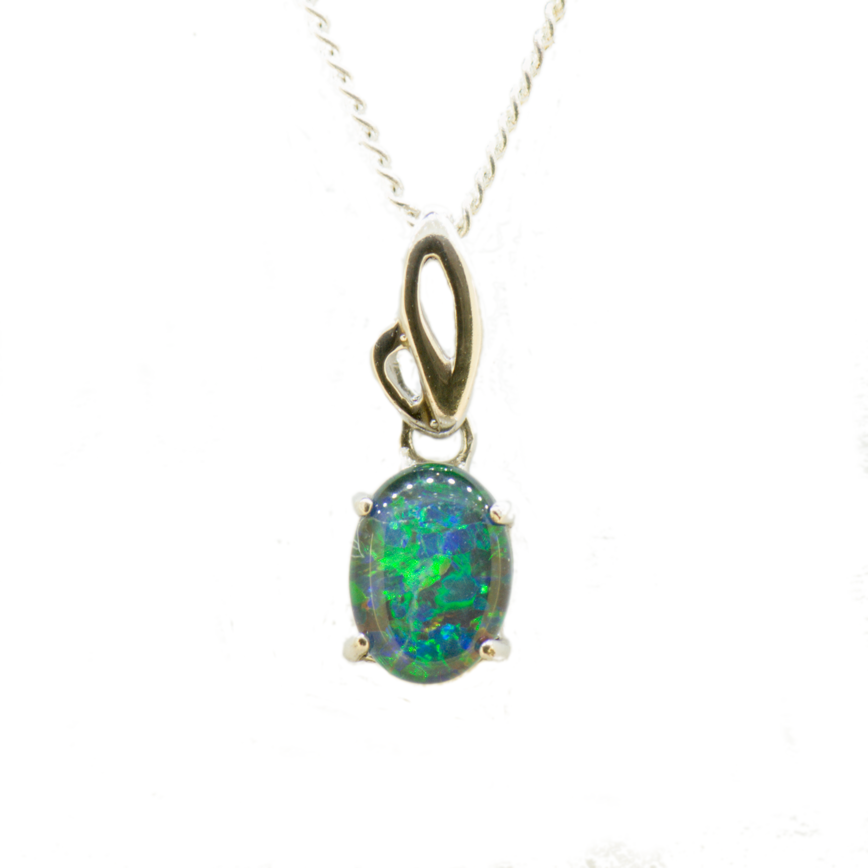 This pendant is made with Australian Triplet Opal and set in Sterling Silver. This pendant comes with a complimentary silver-plated chain