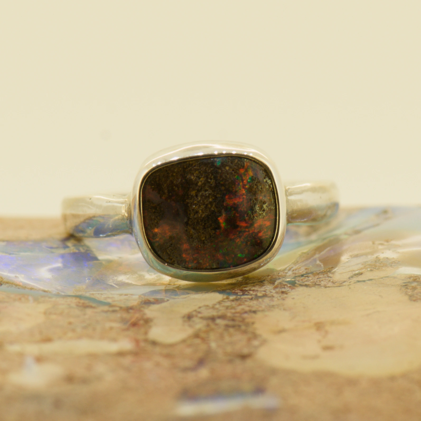 This ring is made with Queensland Boulder Opal and set in Sterling Silver.