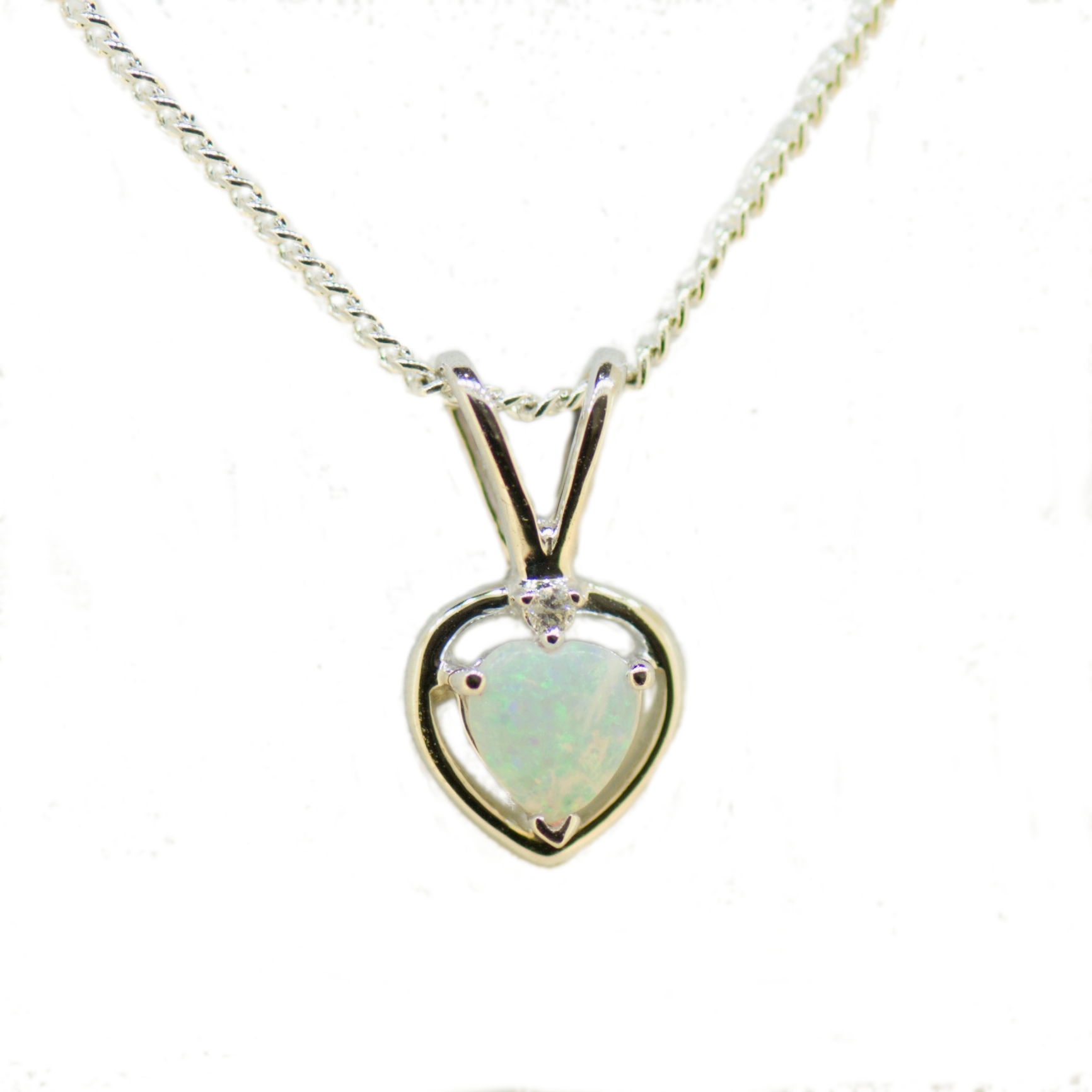 9ct White Gold Solid Opal Heart Pendant