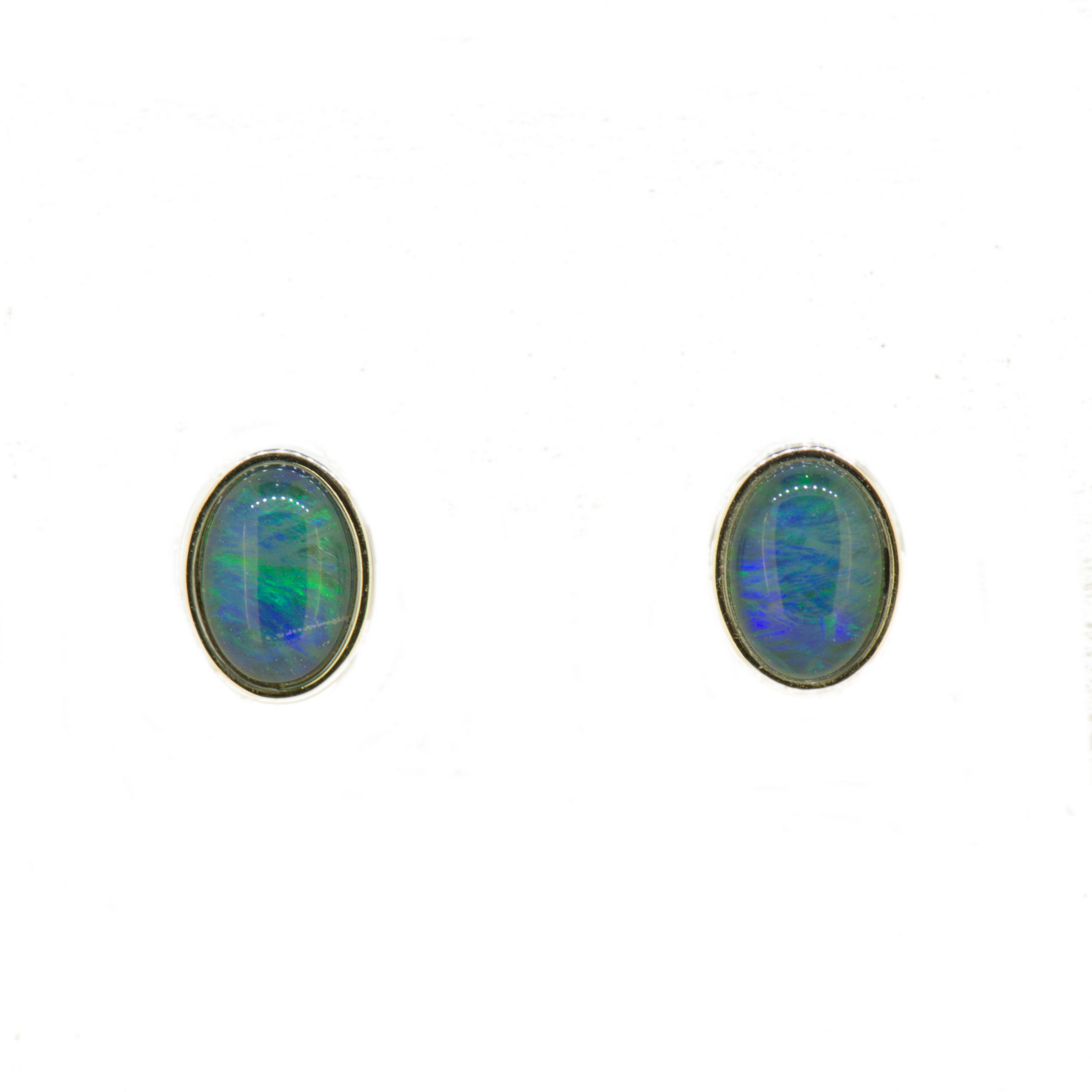 These earrings are made with Triplet Opals and set in Sterling Silver. These earrings are studs and come with fitted butterfly backings.