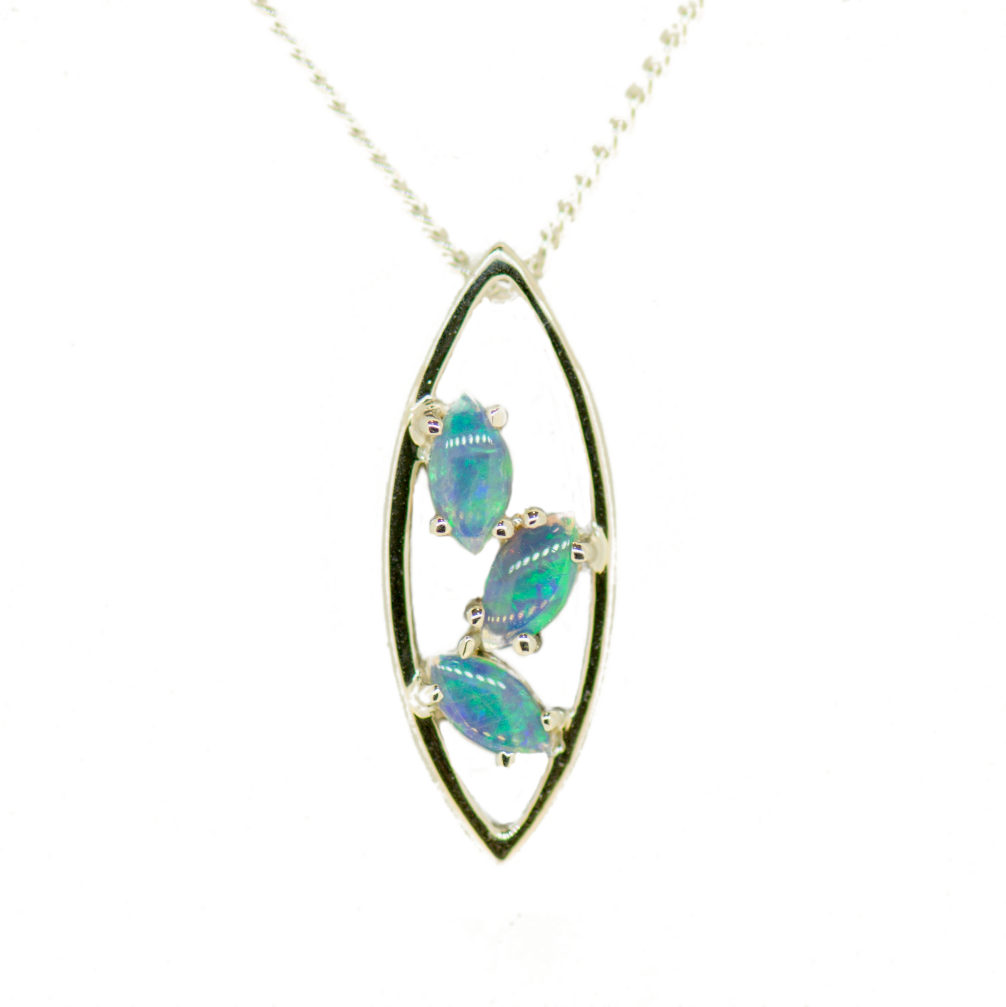 This pendant is made with Solid Australian Opals and set in Sterling Silver. This pendant comes with a complimentary silver-plated chain