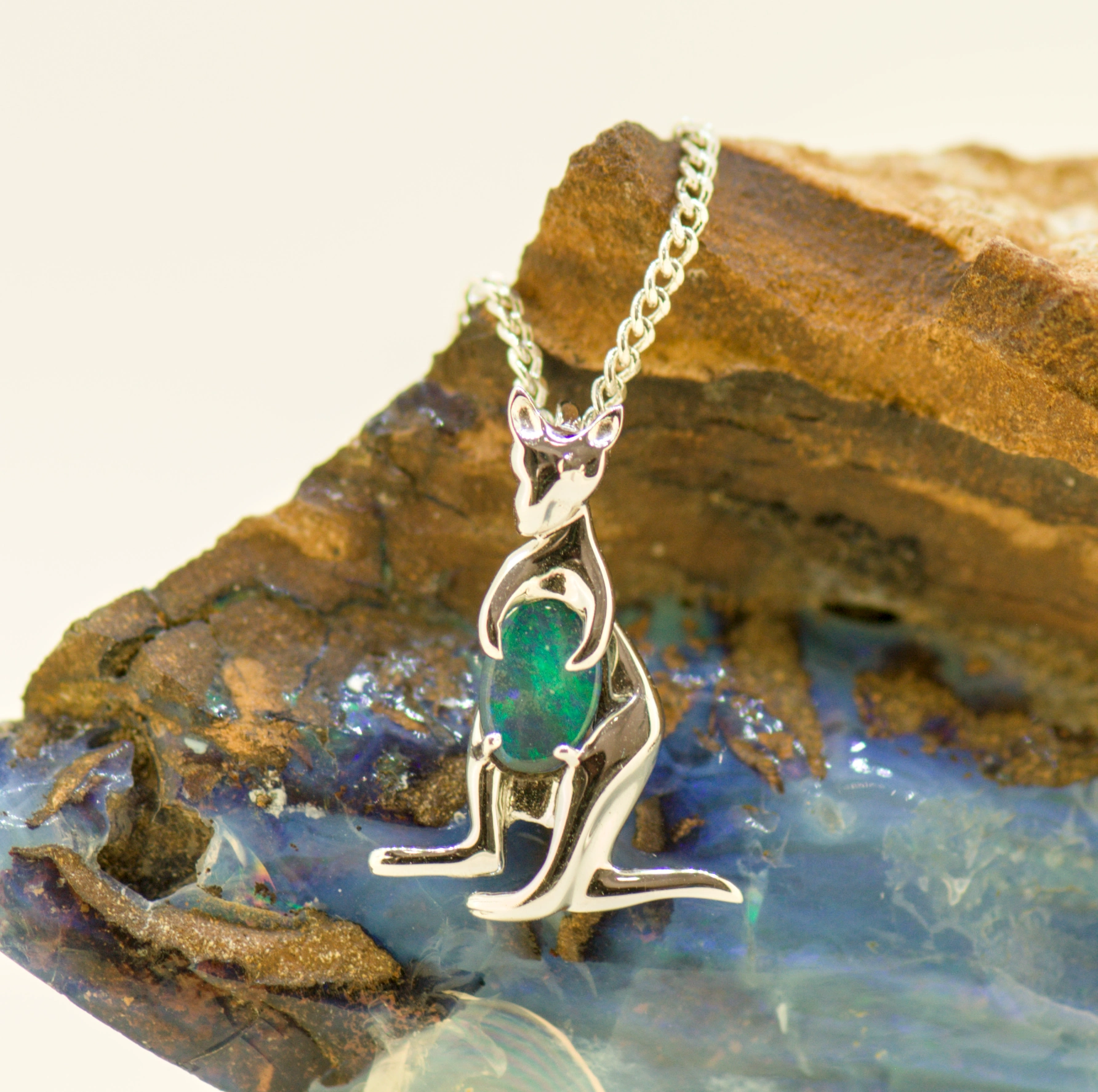 14ct White Gold Doublet Opal Kangaroo Pendant
